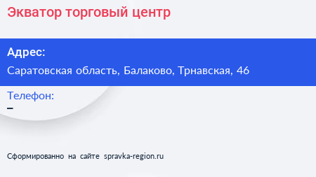 Экватор, торговый центр по адресу Саратовская область, Балаково, Трнавская, 46 в дальнейшем Организация, размещена в следующих категориях: