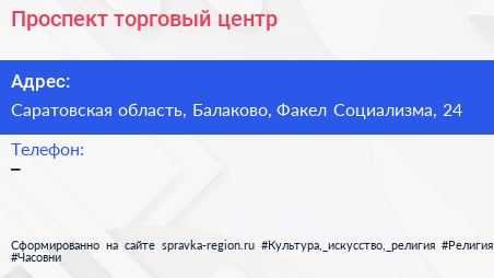 Проспект, торговый центр по адресу Саратовская область, Балаково, Факел Социализма, 24 в дальнейшем Организация, размещена в следующих категориях: