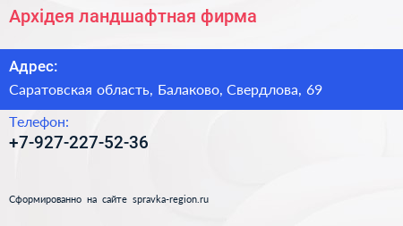 Архiдея, ландшафтная фирма по адресу Саратовская область, Балаково, Свердлова, 69 в дальнейшем Организация, размещена в следующих категориях: