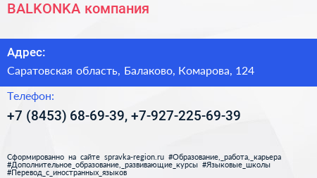 BALKONKA, компания по адресу Саратовская область, Балаково, Комарова, 124 в дальнейшем Организация, размещена в следующих категориях:
