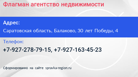 Флагман, агентство недвижимости по адресу Саратовская область, Балаково, 30 лет Победы, 4 в дальнейшем Организация, размещена в следующих категориях: