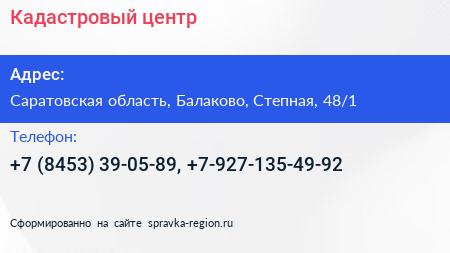 Кадастровый центр по адресу Саратовская область, Балаково, Степная, 48/1 в дальнейшем Организация, размещена в следующих категориях: