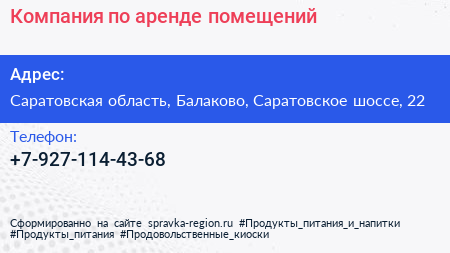 Компания по аренде помещений по адресу Саратовская область, Балаково, Саратовское шоссе, 22 в дальнейшем Организация, размещена в следующих категориях: