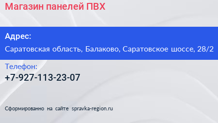Магазин панелей ПВХ по адресу Саратовская область, Балаково, Саратовское шоссе, 28/2 в дальнейшем Организация, размещена в следующих категориях: