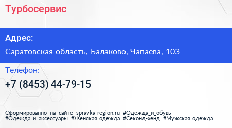 Турбосервис по адресу Саратовская область, Балаково, Чапаева, 103 в дальнейшем Организация, размещена в следующих категориях: