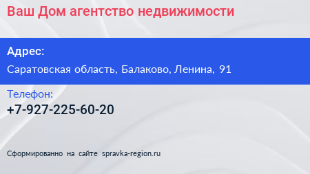Ваш Дом, агентство недвижимости по адресу Саратовская область, Балаково, Ленина, 91 в дальнейшем Организация, размещена в следующих категориях: