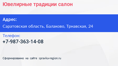 Ювелирные традиции, салон по адресу Саратовская область, Балаково, Трнавская, 24 в дальнейшем Организация, размещена в следующих категориях: