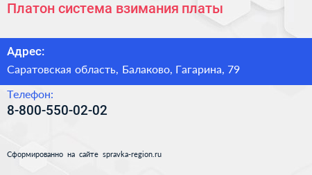 Платон, система взимания платы по адресу Саратовская область, Балаково, Гагарина, 79 в дальнейшем Организация, размещена в следующих категориях: