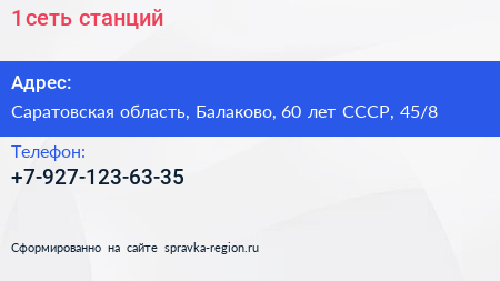 №1, сеть станций по адресу Саратовская область, Балаково, 60 лет СССР, 45/8 в дальнейшем Организация, размещена в следующих категориях: