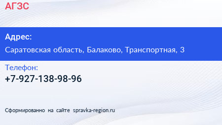 АГЗС по адресу Саратовская область, Балаково, Транспортная, 3 в дальнейшем Организация, размещена в следующих категориях: