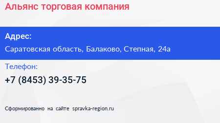 Альянс, торговая компания по адресу Саратовская область, Балаково, Степная, 24а в дальнейшем Организация, размещена в следующих категориях: