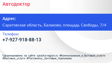 Автодоктор по адресу Саратовская область, Балаково, площадь Свободы, 7/4 в дальнейшем Организация, размещена в следующих категориях: