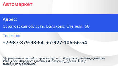 Автомаркет по адресу Саратовская область, Балаково, Степная, 68 в дальнейшем Организация, размещена в следующих категориях: