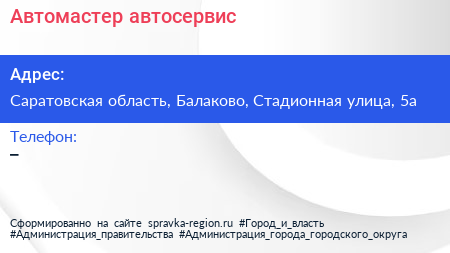 Автомастер, автосервис по адресу Саратовская область, Балаково, Стадионная улица, 5а в дальнейшем Организация, размещена в следующих категориях: