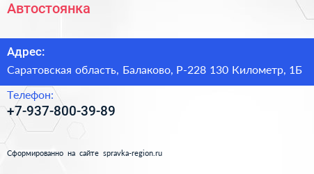 Автостоянка по адресу Саратовская область, Балаково, Р-228 130 Километр, 1Б в дальнейшем Организация, размещена в следующих категориях: