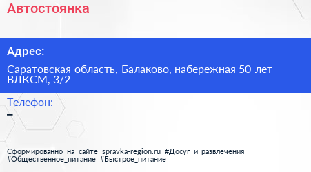 Адрес: Саратовская область, Балаково, Саратовское шоссе, 14/3