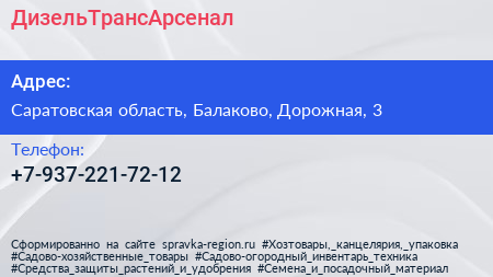 ДизельТрансАрсенал по адресу Саратовская область, Балаково, Дорожная, 3 в дальнейшем Организация, размещена в следующих категориях: