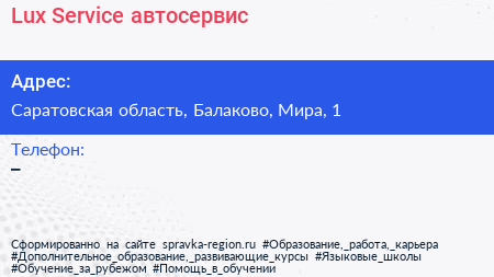 Lux Service, автосервис по адресу Саратовская область, Балаково, Мира, 1 в дальнейшем Организация, размещена в следующих категориях: