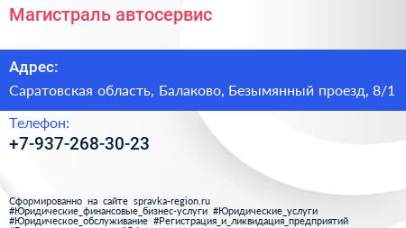Магистраль, автосервис по адресу Саратовская область, Балаково, Безымянный проезд, 8/1 в дальнейшем Организация, размещена в следующих категориях: