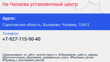 На Чапаева, установочный центр по адресу Саратовская область, Балаково, Чапаева, 114/1 в дальнейшем Организация, размещена в следующих категориях:
