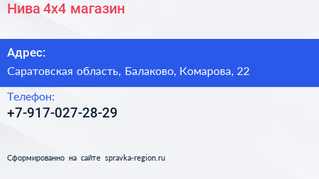Нива 4х4, магазин по адресу Саратовская область, Балаково, Комарова, 22 в дальнейшем Организация, размещена в следующих категориях: