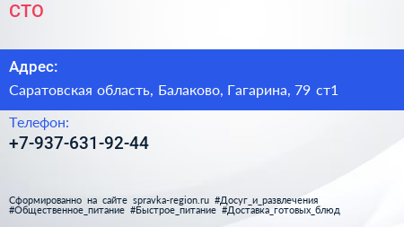 СТО по адресу Саратовская область, Балаково, Гагарина, 79 ст1 в дальнейшем Организация, размещена в следующих категориях: