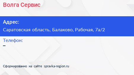 Волга-Сервис по адресу Саратовская область, Балаково, Рабочая, 7а/2 в дальнейшем Организация, размещена в следующих категориях: