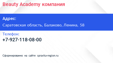 Beauty Academy, компания по адресу Саратовская область, Балаково, Ленина, 58 в дальнейшем Организация, размещена в следующих категориях: