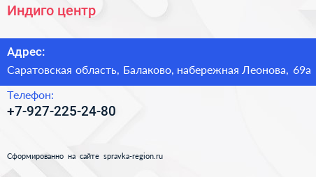 Индиго, центр по адресу Саратовская область, Балаково, набережная Леонова, 69а в дальнейшем Организация, размещена в следующих категориях: