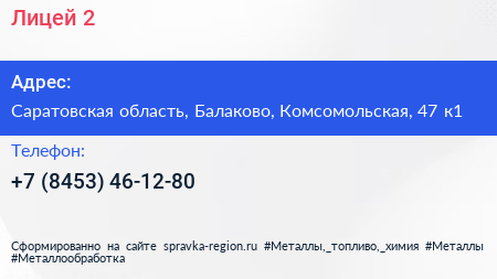 Лицей №2 по адресу Саратовская область, Балаково, Комсомольская, 47 к1 в дальнейшем Организация, размещена в следующих категориях:
