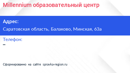 Millennium, образовательный центр по адресу Саратовская область, Балаково, Минская, 63а в дальнейшем Организация, размещена в следующих категориях: