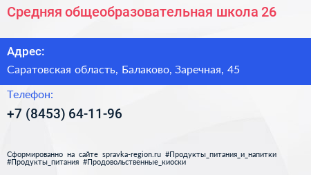 Средняя общеобразовательная школа №26 по адресу Саратовская область, Балаково, Заречная, 45 в дальнейшем Организация, размещена в следующих категориях: