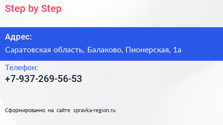 Step by Step по адресу Саратовская область, Балаково, Пионерская, 1а в дальнейшем Организация, размещена в следующих категориях: