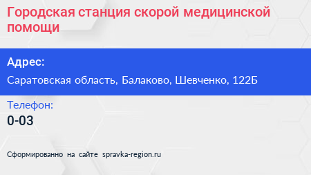 Городская станция скорой медицинской помощи по адресу Саратовская область, Балаково, Шевченко, 122Б в дальнейшем Организация, размещена в следующих категориях: