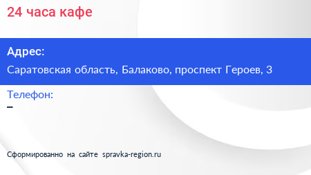 24 часа, кафе по адресу Саратовская область, Балаково, проспект Героев, 3 в дальнейшем Организация, размещена в следующих категориях: