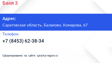 Баня №3 по адресу Саратовская область, Балаково, Комарова, 67 в дальнейшем Организация, размещена в следующих категориях: