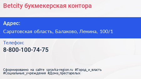 Betcity, букмекерская контора по адресу Саратовская область, Балаково, Ленина, 100/1 в дальнейшем Организация, размещена в следующих категориях: