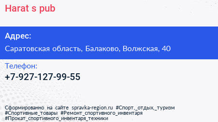 Harat`s pub по адресу Саратовская область, Балаково, Волжская, 40 в дальнейшем Организация, размещена в следующих категориях: