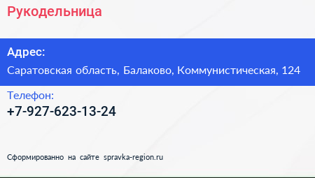 Рукодельница по адресу Саратовская область, Балаково, Коммунистическая, 124 в дальнейшем Организация, размещена в следующих категориях: