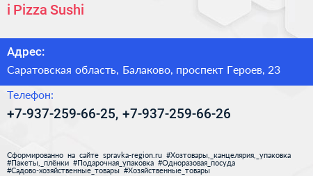 i-Pizza Sushi по адресу Саратовская область, Балаково, проспект Героев, 23 в дальнейшем Организация, размещена в следующих категориях: