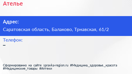 Ателье по адресу Саратовская область, Балаково, Трнавская, 61/2 в дальнейшем Организация, размещена в следующих категориях: