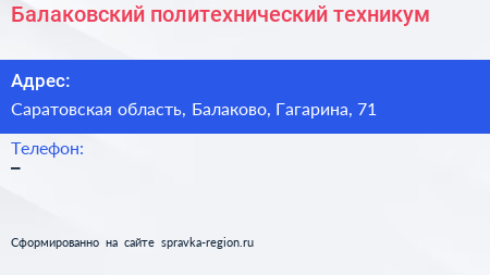 Балаковский политехнический техникум по адресу Саратовская область, Балаково, Гагарина, 71 в дальнейшем Организация, размещена в следующих категориях:
