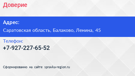 Доверие по адресу Саратовская область, Балаково, Ленина, 45 в дальнейшем Организация, размещена в следующих категориях: