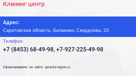 Клининг центр по адресу Саратовская область, Балаково, Свердлова, 23 в дальнейшем Организация, размещена в следующих категориях: