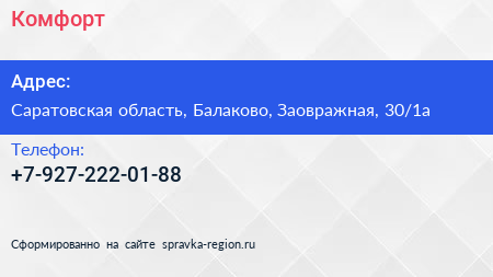 Комфорт по адресу Саратовская область, Балаково, Заовражная, 30/1а в дальнейшем Организация, размещена в следующих категориях: