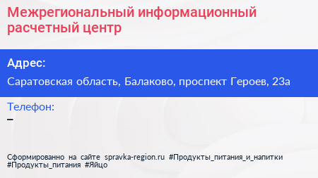 Межрегиональный информационный расчетный центр по адресу Саратовская область, Балаково, проспект Героев, 23а в дальнейшем Организация, размещена в следующих категориях: