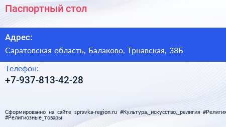 Паспортный стол по адресу Саратовская область, Балаково, Трнавская, 38Б в дальнейшем Организация, размещена в следующих категориях: