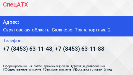 СпецАТХ по адресу Саратовская область, Балаково, Транспортная, 2 в дальнейшем Организация, размещена в следующих категориях: