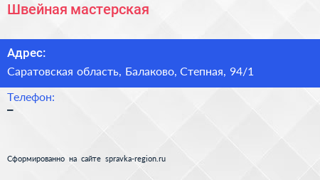 Швейная мастерская по адресу Саратовская область, Балаково, Степная, 94/1 в дальнейшем Организация, размещена в следующих категориях:
