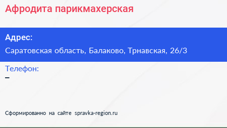Афродита, парикмахерская по адресу Саратовская область, Балаково, Трнавская, 26/3 в дальнейшем Организация, размещена в следующих категориях: